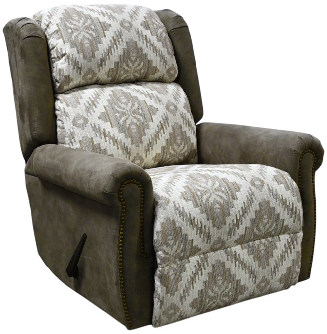 Looking for the perfect rustic styled recliner for your home? Look no more! The EZ5H60 recliner features a tightly rolled arm, winged pillow-top back, and optional antique brass nailhead trim. This silhouette is available in select fabrics. Available as a minimum proximity, rocking, and swivel gliding recliner.Read More