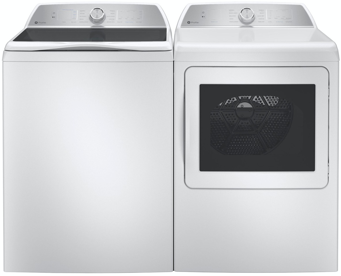 GE Profile™ White Laundry Pair with a 5.0 cu. ft. top load Washer and 7.4 cu. ft. front load electric dryer.Read More