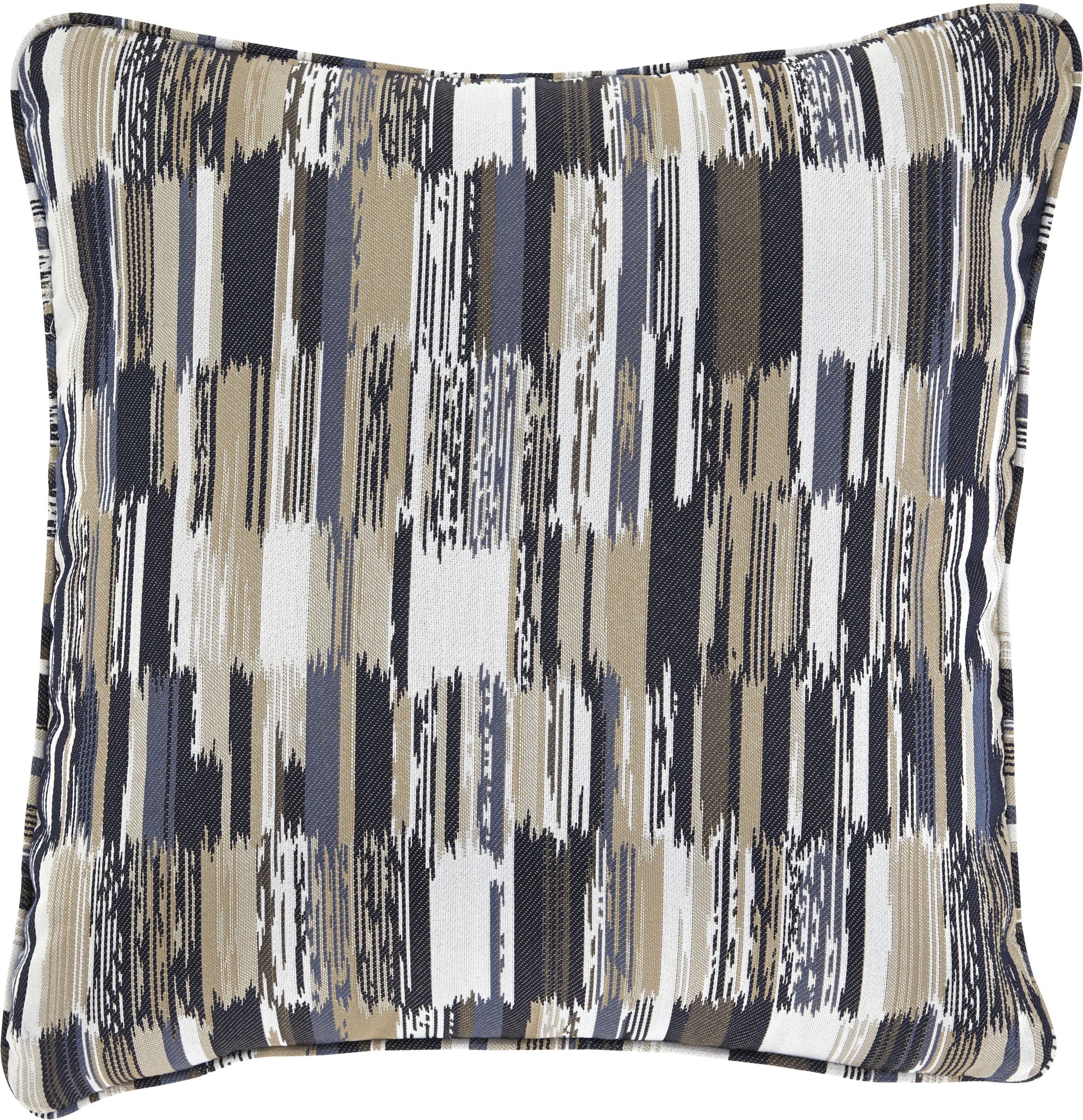 Lighten up with this multi-hued indoor-outdoor pillow. It’s wrapped in high-performance Nuvella® fabric that’s stain resistant and a breeze to clean. Pillow. Abstract Design in Black, Tan, Indigo, and Cream. Polyester Cover. Zipper Closure. Fiber Filled. Spot Clean Only.