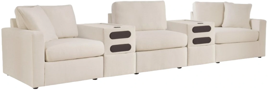 Includes 5 Modular Pieces: Left-arm facing corner chair, armless chair, 2 audio consoles with storage and right-arm facing corner chair