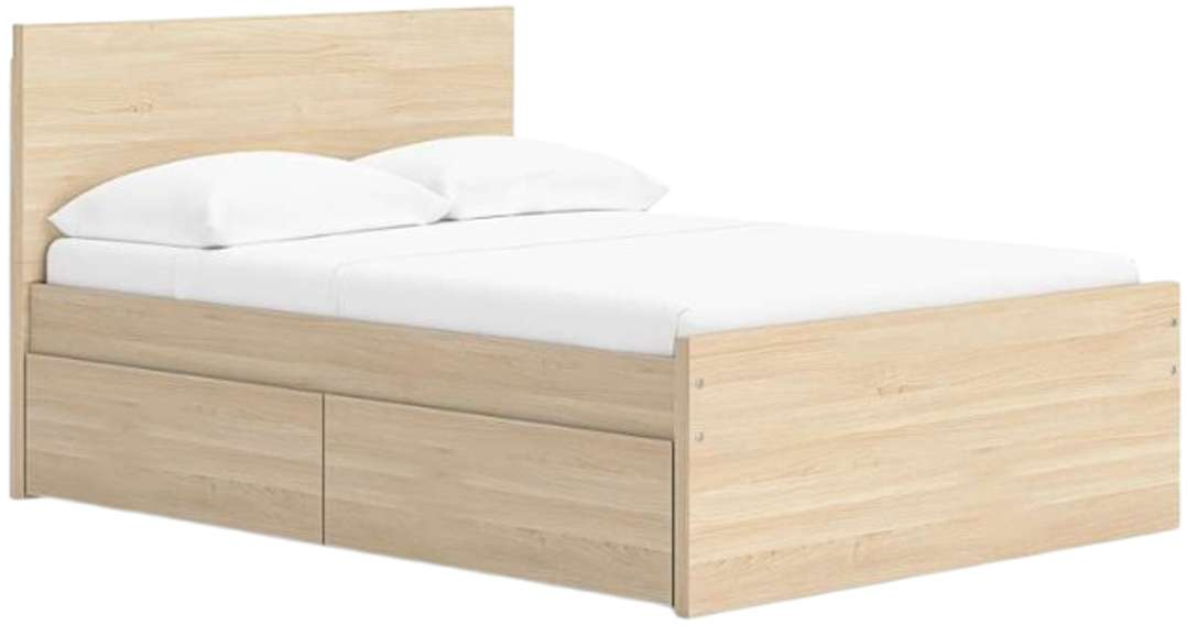Includes panel headboard, platform bed panels, platform rails, roll slats and 2 side storage drawers