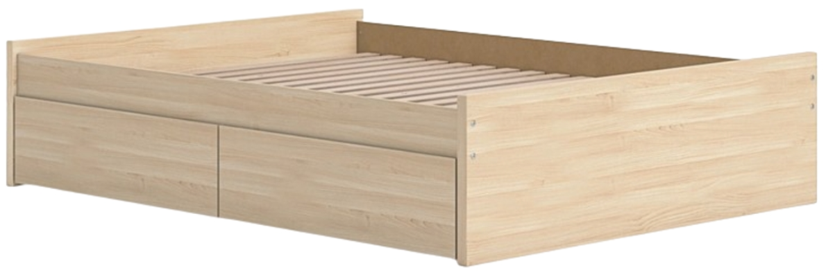 Includes platform bed panels, platform rails, roll slats and 2 side storage drawers