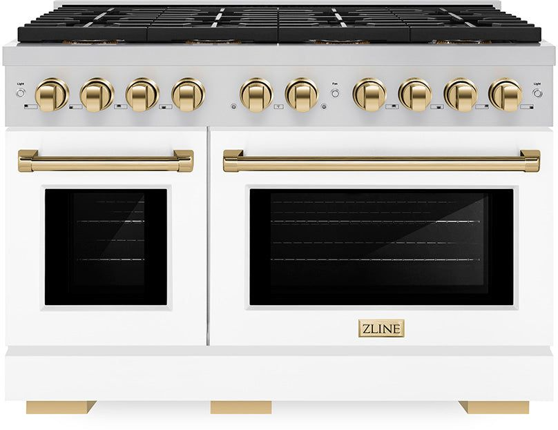 Luxury isn’t meant to be left desired—it’s meant to be attainable. The ZLINE Autograph Edition 48 in. 6.7 cu. ft. Paramount Dual Fuel Range with 8 Burner DuoPro™ Cooktop and Dual Ovens with White Matte Doors and Polished Gold Accents (PSDRZ-WM-48-G) features a high-powered gas cooktop with 8 hand-crafted Italian dual-ring brass burners and a versatile electric convection oven allowing you to master every meal. Double your cooking power on every burner with a DuoPro™ Cooktop that delivers ultimate flame control flexibility and unprecedented culinary confidence.Read More